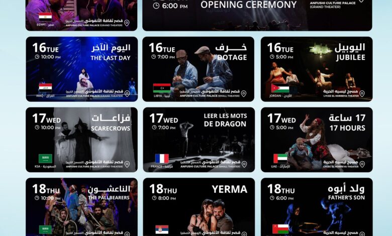 The Official Schedule of Theatrical Performances Participating in the 15th Edition of the Alexandria International Theater Festival (Theater Without Fund) – Mohamed Henedi Edition