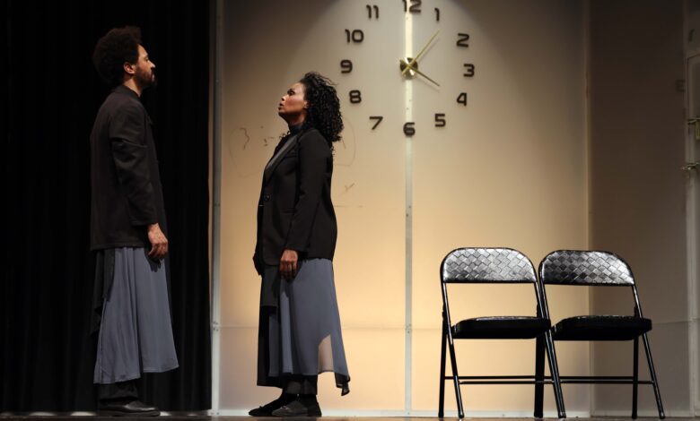 كما نرى أن الطرف الثالث دائما ما هو الطرف الغائب الحاضر، المؤثر غير المرئي، طرف غير عياني و قابل للتأويل و التصورات المختلفة، لكن عندما يتجسد هذا الطرف في العرض، يفقده كثير من الافكار و الجماليات و يحول العرض الى عرض تقليدي يتنازع شخصياته الافكار و المعتقدات بشكل تقليدي، حتى أن المخرج في هذا العرض ذهب بالصراع من صراع فكري و فلسفي الى صراع جسدي حين يتشابك الطرفين من خلال الأيدي في نهاية العرض، و هذا ما جعل العرض فاقد لقدرة ترسيم و تأسيس بنية الصراع الفكري و العقائدي من منظوره الفلسفي و الجمالي و سحبه الى المساحة الصراع الجسدي الذي يرتكز على منطق قوة لا قوة المنطق..