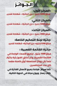 المركز الثالث : أصبحت الجائزة 2000 جنيهٍ للمقال بدلاً عن 1000 جنيهٍ.